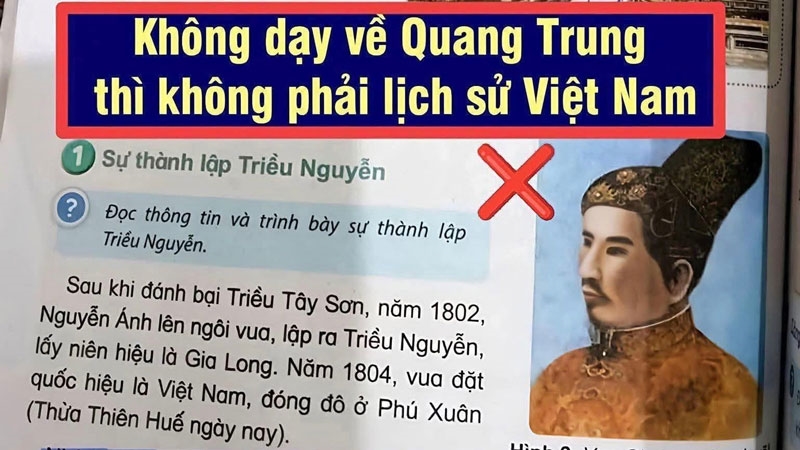 Trong đó, tiêu biểu là thông tin: SGK Lịch sử – Địa lí lớp 5 chỉ có nội dung dạy về Nguyễn Ánh (Gia Long) nhưng không dạy về Quang Trung – phong trào Tây Sơn; từ đó, đi đến phủ nhận vô căn cứ nội dung lịch sử trong SGK.