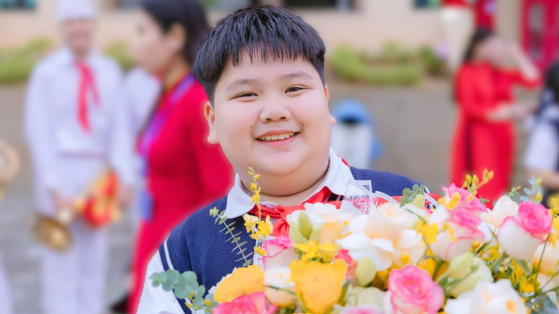 Bùi Nguyên Gia Bảo hiện là học sinh lớp 6A9 Trường THCS Tây Mỗ 3 (Hà Nội) có bảng thành tích học tập ấn tượng, trái ngược với cậu bé Chiến Đo học dốt đều trong phim "Cách em một milimet". Ảnh: NVCC