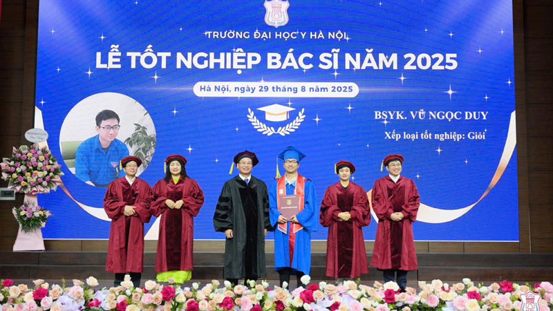 Từng là học sinh giỏi quốc gia môn Toán hiếm hoi lựa chọn học Y khoa của Trường Đại học Y Hà Nội, Vũ Ngọc Duy vừa hoàn thành xuất sắc kì thi bác sĩ nội trú với kết quả 25,09/30 điểm, trở thành thủ khoa toàn khóa năm 2025.