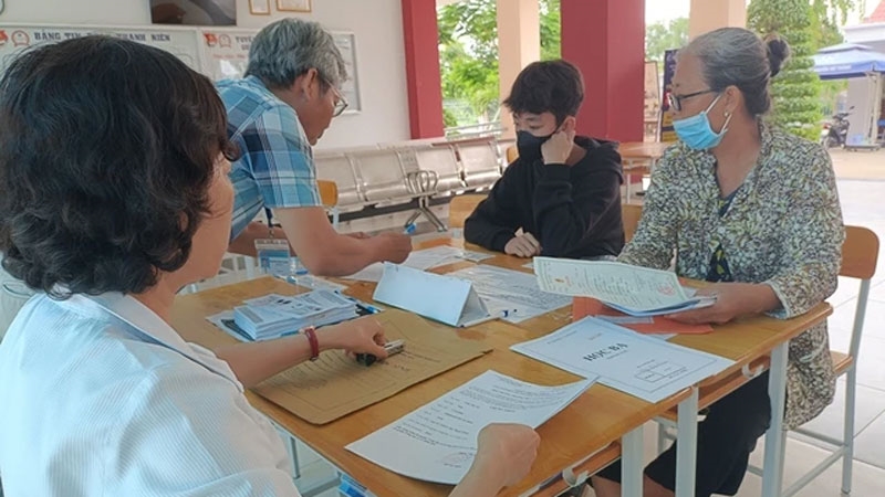 Phụ huynh và học sinh nộp hồ sơ tại Trung tâm GDNN-GDTX H.Hóc Môn, TP.HCM. PHÚC DUY