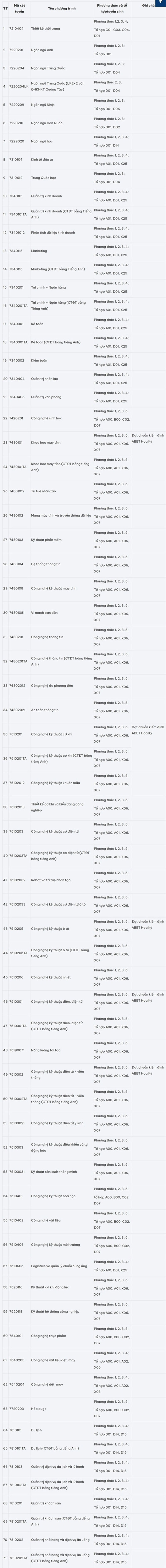 Chi tiết phương thức và tổ hợp tuyển sinh các chương trình đào tạo của ĐH Công nghiệp Hà Nội năm 2026 như sau: