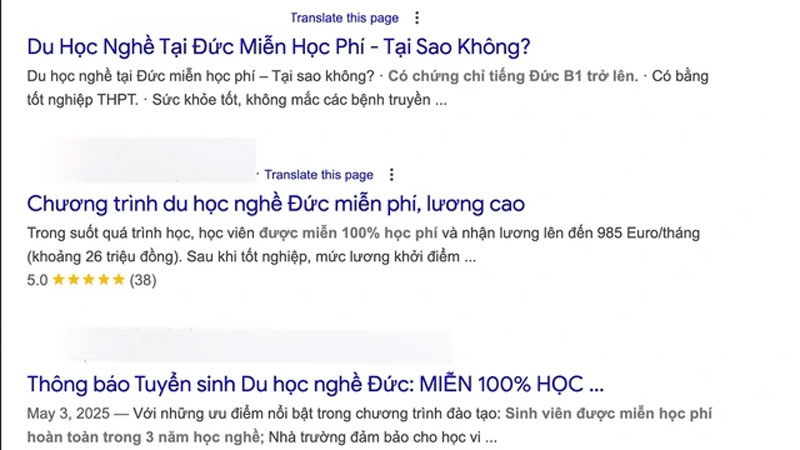 Hàng loạt quảng cáo du học Đức trên mạng - ẢNH: CHỤP MÀN HÌNH