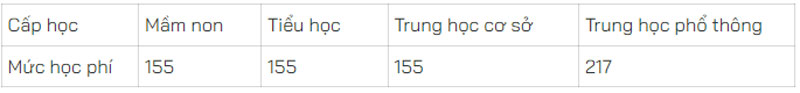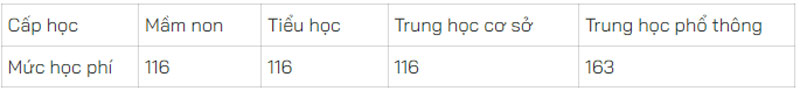Mức hỗ trợ học phí theo hình thức học trực tiếp như sau: (đơn vị tính: nghìn đồng/học sinh/tháng)
