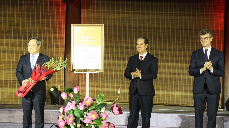 Tối 29/1, tại Văn Miếu - Quốc Tử Giám, UBND Thành phố Hà Nội tổ chức Lễ đón nhận danh hiệu thành phố Hà Nội là thành viên mạng lưới "Thành phố học tập toàn cầu" của UNESCO.