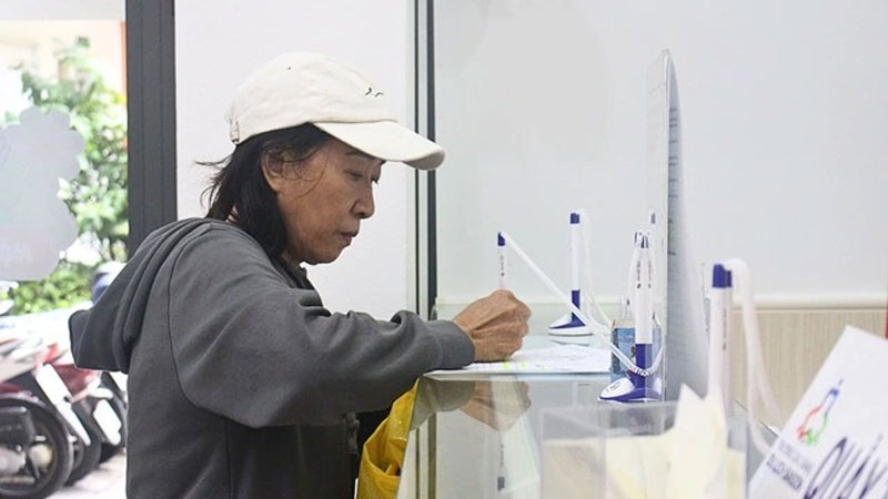 Bà Võ Thị Ánh Tuyết đến trường đóng học phí giùm cháu trai ở An Giang - ẢNH: YẾN THI