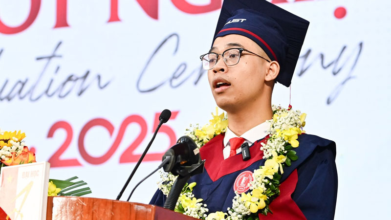 Phương Văn Huy, thủ khoa Trường Điện - Điện tử phát biểu trong lễ tốt nghiệp. Ảnh: HUST