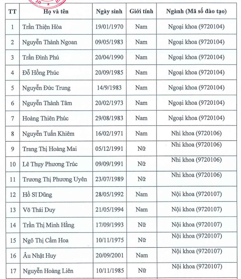 Trường Đại học Y khoa Phạm Ngọc Thạch xác nhận văn bản lan truyền trên mạng xã hội chính là danh sách trúng tuyển đào tạo tiến sĩ năm nay của trường.