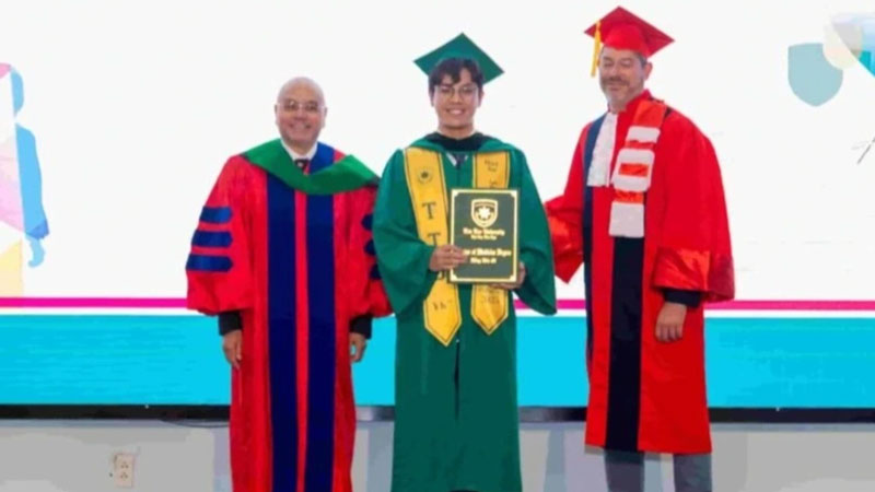 Âu Nhật Huy trong lễ tốt nghiệp đại học vào tháng 8 vừa qua (Ảnh: TTU).