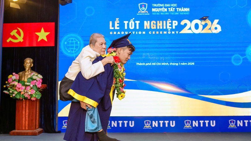 Ngày tốt nghiệp, Dũng chọn cõng mẹ lên sân khấu. Với em, đó không phải là khoảnh khắc gây chú ý, mà là lời tri ân sâu sắc nhất. Ngày xưa, mẹ bồng con qua những bước đi đầu đời. Hôm nay, người con đủ trưởng thành để trở thành điểm tựa, đưa mẹ đi qua cột mốc quan trọng của cuộc đời mình.