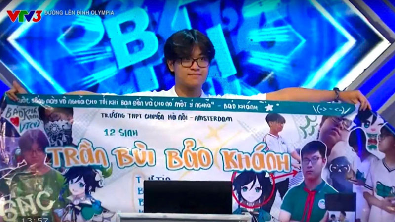 Trần Bùi Bảo Khánh mang cầu truyền hình trận chung kết năm Đường lên đỉnh Olympia năm thứ 25 về với Trường THPT Chuyên Hà Nội - Amsterdam, Hà Nội.