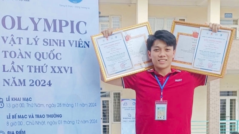 Phong với hai bằng khen giải nhất ở kỳ thi Olympic Vật lý sinh viên toàn quốc 2024. Ảnh: Nhân vật cung cấp