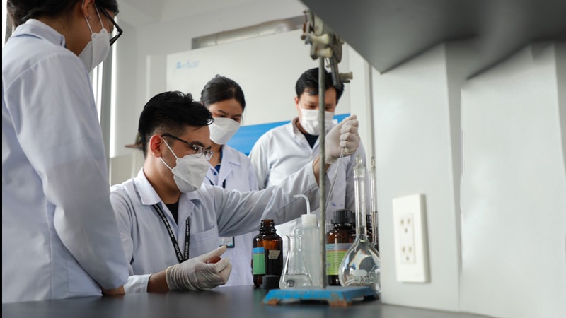Sinh viên ngành Công nghệ thực phẩm, Trường ĐH Công nghiệp Thực phẩm TPHCM trong phòng thí nghiệm.