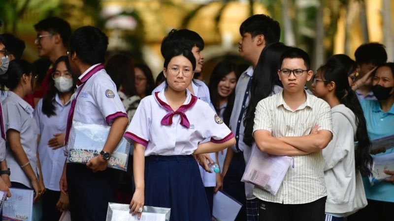 Các thí sinh thi tốt nghiệp THPT 2025 ở điểm trường THPT Trưng Vương, phường Bến Nghé, TP HCM. Ảnh: Thanh Tùng
