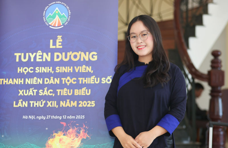 Nữ sinh Trần Thị Thảo Linh (sinh viên ngành Sư phạm Ngữ văn, Trường ĐH Sư phạm Hà Nội) lọt danh sách học sinh, sinh viên, thanh niên dân tộc thiểu số xuất sắc, tiêu biểu năm 2025.