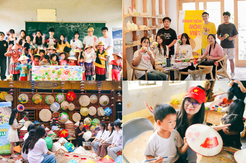 Nhóm của Ngân trong dự án nón lá làng Chuông. Ảnh: NVCC