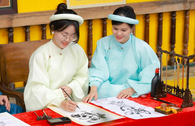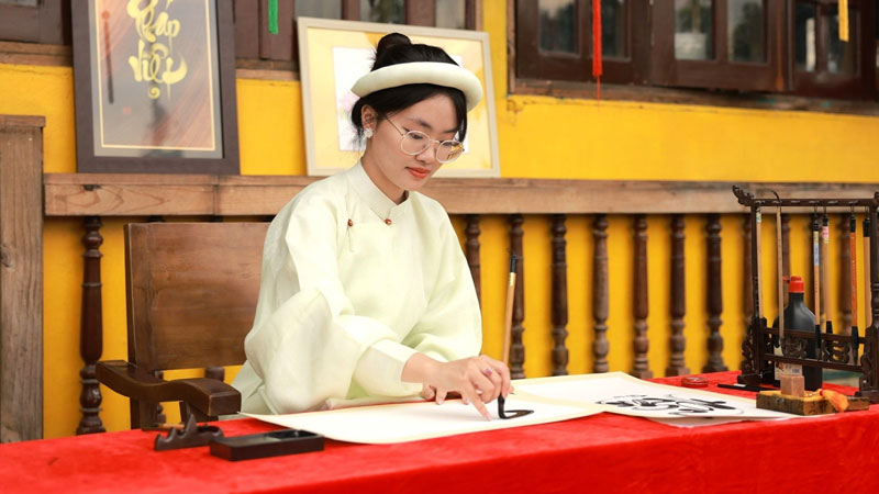 Trúc không chỉ viết chữ vào các dịp lễ, Tết mà còn tham gia nhiều hoạt động như viết thư pháp tại chùa, phố đi bộ, lễ hội văn hóa. Em cũng tổ chức các lớp dạy thư pháp miễn phí, giúp thế hệ trẻ hiểu và yêu hơn giá trị của con chữ.