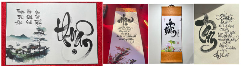 Mỗi dịp Tết đến xuân về, Trúc đều trong vai "thầy đồ" viết chữ tặng mọi người. “Em muốn lan tỏa, lưu giữ nét thư pháp và nét văn hóa đẹp của dân tộc. Thấy mọi người, đặc biệt là các em học sinh chụp ảnh khoe treo chữ mình viết tặng đặt ở góc học tập hoặc nơi trang trọng trong nhà, em thấy rất vui và hạnh phúc”, nữ sinh chia sẻ.