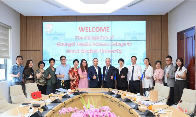 Thủy Ngân (ngoài cùng phía bên phải), trong chương trình giao lưu giữa Trường Cao Đẳng Khoa học Y tế Quảng Tây và Trường Đại học Y Hà Nội (Ảnh: NVCC).