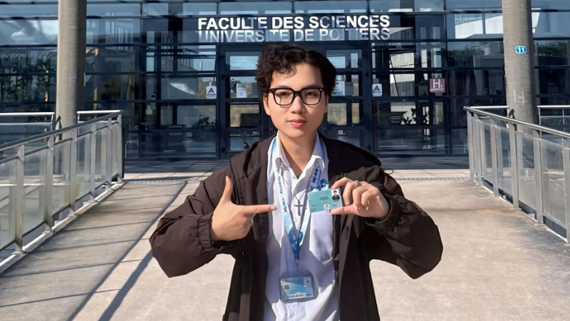 Lê Thanh Tài trong thời gian trao đổi luận văn tốt nghiệp tại Viện Pprime, Đại học Poitiers (3–10/2025). Ảnh: NVCC