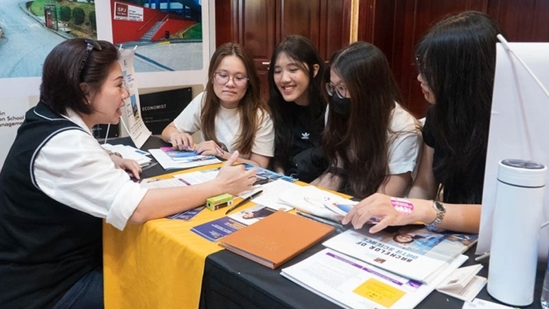 Học sinh Việt tìm hiểu về cơ hội du học Úc tại trường SP Jain School of Global Management. ẢNH: NGỌC LONG